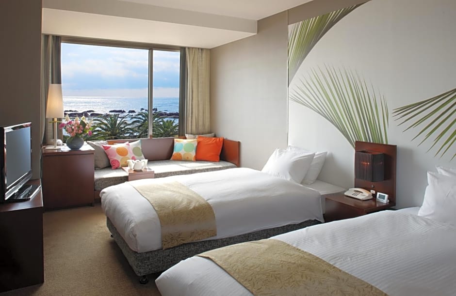 The spacious triple room features air conditioning, a safe deposit box, as well as a private bathroom boasting a bath and a shower. The triple room offers a flat-screen TV, an electric kettle, yukata, heating as well as sea views. The unit has 4 beds.